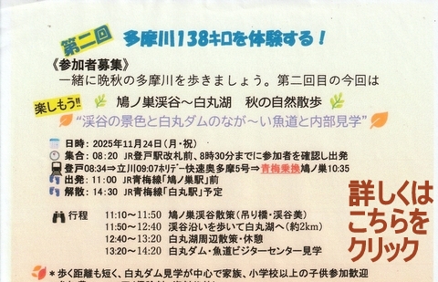 二ヶ領せせらぎ館を運営しています”NPO法人多摩川エコミュージアム”では、多摩川を河口から源流まで体験するツアーを実施しています。一緒に晩秋の多摩川を歩きましょう。 第二回目の今回は、鳩ノ巣渓谷 […]